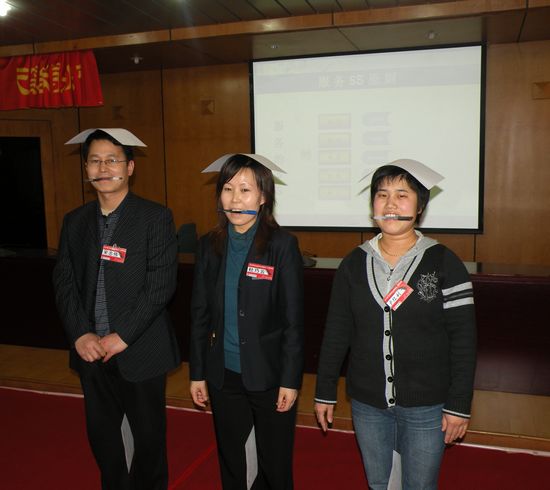 上圖:情境式培訓的家具商務禮儀的演練