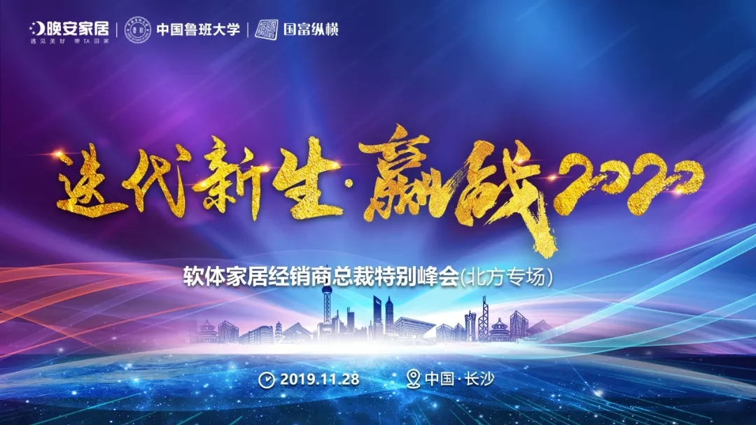 2019年11月28日,由晚安家居北方分公司和中國魯班大學&國富縱橫聯袂發起以“迭代新生 贏戰2020”為主題的軟體家居經銷商總裁特別峰會(北方專場)將在湖南長沙舉行,共邀軟體家居行業優秀經銷商總裁、億級軟體大商,以特別峰會的形式獻禮變革中的經銷商。據了解,本次軟體家居經銷商總裁特別峰會亮點紛呈,以下為具體亮點: